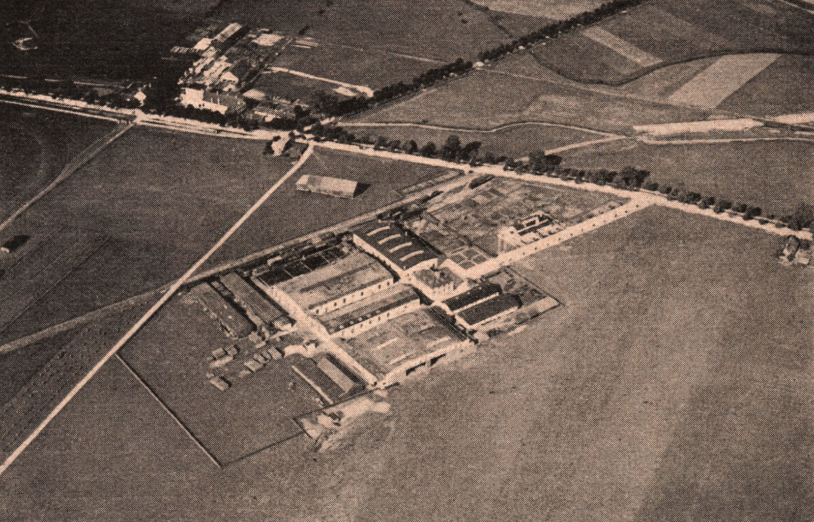 Luftaufnahme des Geländes der Bayerischen Flugzeugwerke AG um 1927. (aus: Bayerische Flugzeugwerke AG in Augsburg, in: Das Land Bayern. Seine kulturelle und wirtschaftliche Bedeutung für das Reich, München 1927, 269)