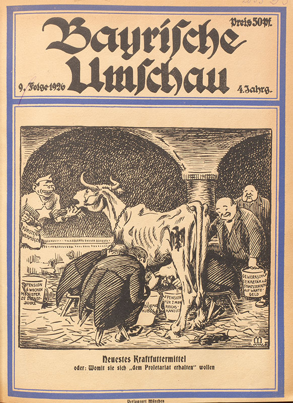 Titelblatt der Zeitschrift "Bayerische Umschau" von 1926. Das Presseorgan des Bundes Bayern und Reich, das bis 1926 mehrere Umbenennungn erfahren hatte, diente auch der Vereinigung Vaterländischen Verbänden in Bayern als Publikationsplattform. Bayerische Umschau, 9. Folge, 4 (1926). (Bayerische Staatsbibliothek 4 Bavar. 3179 k-4)