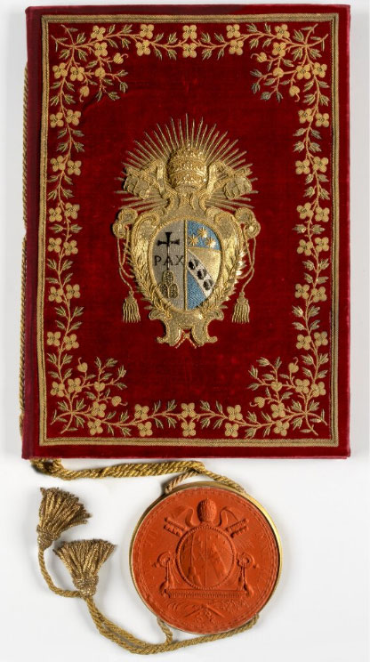 Prunkausfertigung des bayerischen Konkordats mit dem päpstlichen Stuhl vom 5. Juni 1817. (Bayerisches Hauptstaatsarchiv, Bayern Urkunden 1687 lizenziert durch CC BY-NC-ND 4.0 via bavarikon) HLB