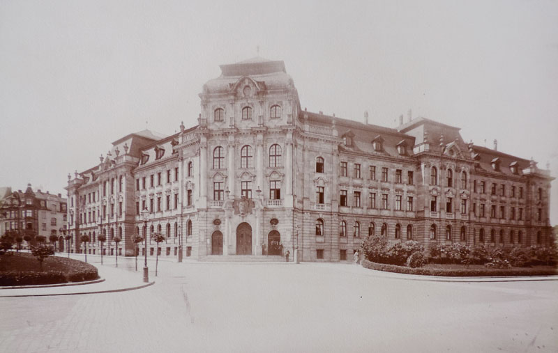 Jusitzpalast in Bayreuth. Im zwischen 1901 und 1904 errichteten Gebäude befand sich ab 1942 der Sitz des Sondergerichtes Bayreuth, das für die Amtgerichtsbezirke Bayreuth und Hof zuständig war. Foto vor 1913. (Central State Archive, Sofia; gemeinfrei via Wikimedia Commons) HLB