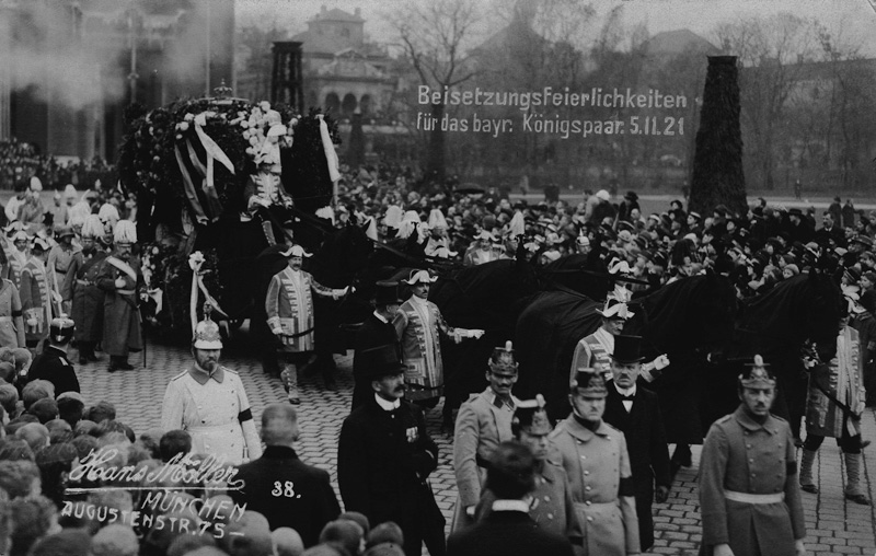 Beisetzungsfeierlichkeiten für das bayerische Königspaar, 5. November 1921 in München. (Bayerische Staatsbibliothek, Bildarchiv hoff-5690) HLB