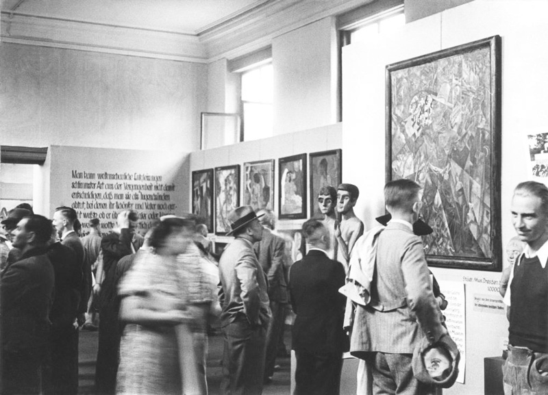 Besucher in der Ausstellung "Entartete Kunst", Raum 3 im Obergeschoss, Juli 1937. (Münchner Stadtarchiv, DE-1992-FS-NS-00174) HLB