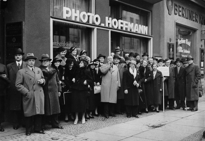 Berliner Belegschaft beim Betriebsausflug vor der dortigen Zentrale, 1934. (Bayerische Staatsbibliothek, Bildarchiv hoff-60274) HLB