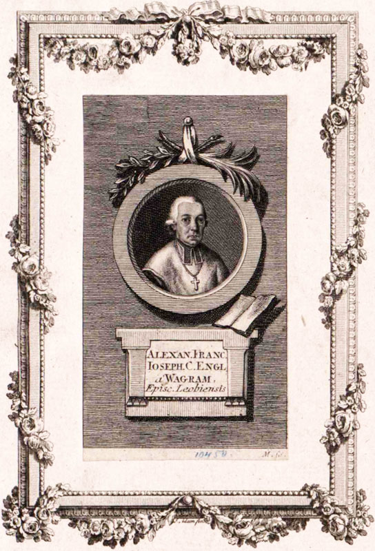 Bischof Alexander Franz Joseph Graf von Engel (1722-1800) war der erste und einzige Bischof der Diözese Leoben. Er residierte im Kloster Göss bei Leoben, wo auch ein Domkapitel errichtet wurde. (Österreichische Nationalbibliothek, PORT_00081507_01)