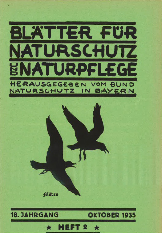 Cover einer Ausgabe der "Blätter für Naturschutz und Naturpflege" 1935. (BUND Naturschutz in Bayern e.V.) HLB