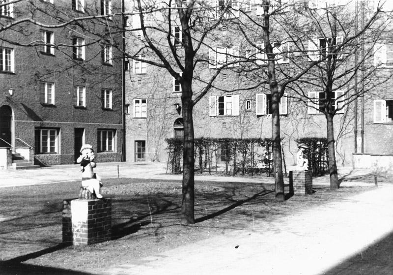 Blick in den Innenhof der Borstei, nach 1945. Fotograf: Johann Vorzellner. (Bayerische Staatsbibliothek, hoff-65707) HLB