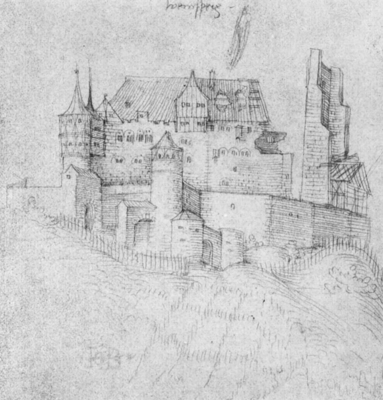 Hans Baldung Grien (c. 1484/85-1545), Zeichnung der Burg Weinsberg, 1514/15. (Gemeinfrei via Zeno.org)