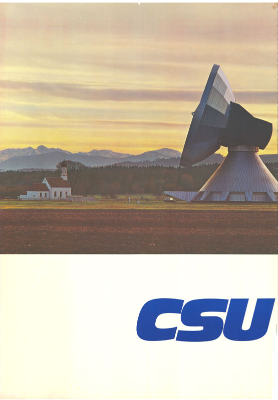 Plakat der CSU zur Landtagswahl 1970 mit der Erdfunkstelle Raisting. (HSS-ACSP/Pl S : 876) HLB