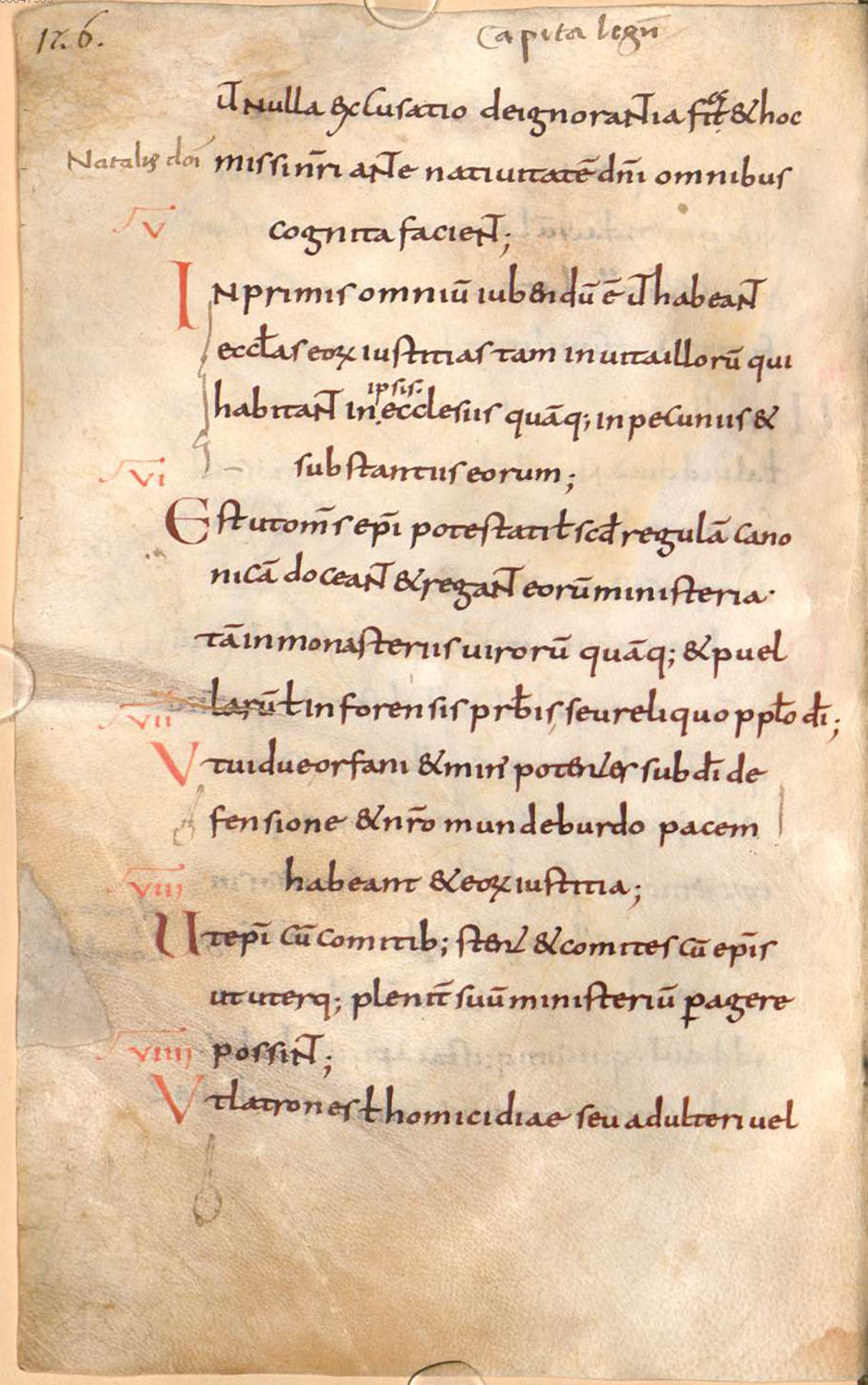 Capitulare Baiuvariorum. (Africanus, Iunilius: Lex Baiuvariorum, Freising 820-830, 126; Bayerische Staatsbibliothek, Clm 19415)