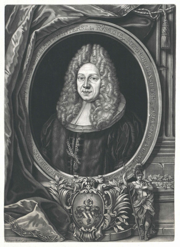 Christoph Wilhelm Tucher von Simmelsdorf (16659-1714). Kupferstich von Johannes Kenckel (1688-1722). Der Nürnberger Ratsherr finanzierte den Wiederaufbau der niedergebrannten Egidienkirche. (Österreichische Nationalbibliothek, PORT_00142413_01)