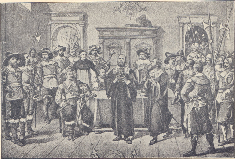 Kunstblatt zu "Der Meistertrunk". Abb. aus: Hörber, Adam: Historisches Festspiel "Der Meistertrunk" Rothenburg o. T. 1906. (Bayerische Staatsbibliothek, Bavar. 2289 g-11) HLB
