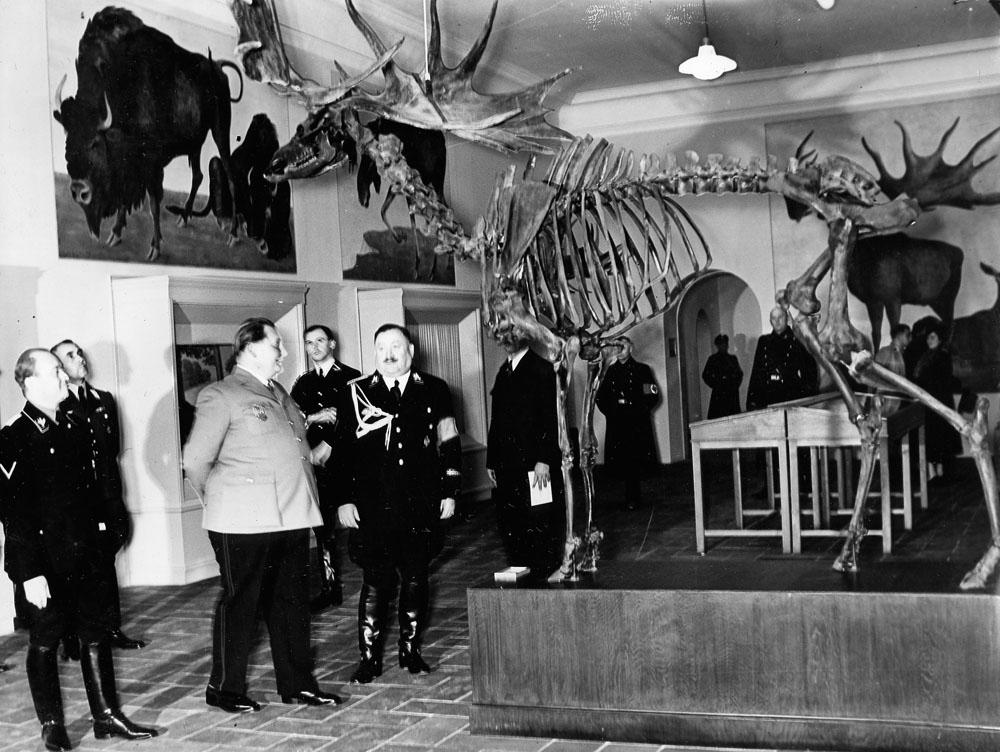 Reichsjägermeister Hermann Göring (NSDAP, 1893-1946) besuchte das Deutsche Jagdmuseum nur ein einziges Mal. Die Gründung eines deutschen Jagdmuseums durch Christian Weber (NSDAP, 1883-1945) und noch dazu in München lehnte er entschieden ab, wollte er doch selbst ein solches Museum errichten. Allerdings konnte er sich jedoch gegen Weber, einen altgedienten Duz-Freund Adolf Hitlers (NSDAP, 1889-1945) nicht durchsetzen. Göring blieb daher trotz Einladung den Eröffnungsfeierlichkeiten fern und besuchte das Museum nur beiläufig bei einem Besuch in München am 8. November 1938. (Bayerische Staatsbibliothek, Bildarchiv hoff-38923)