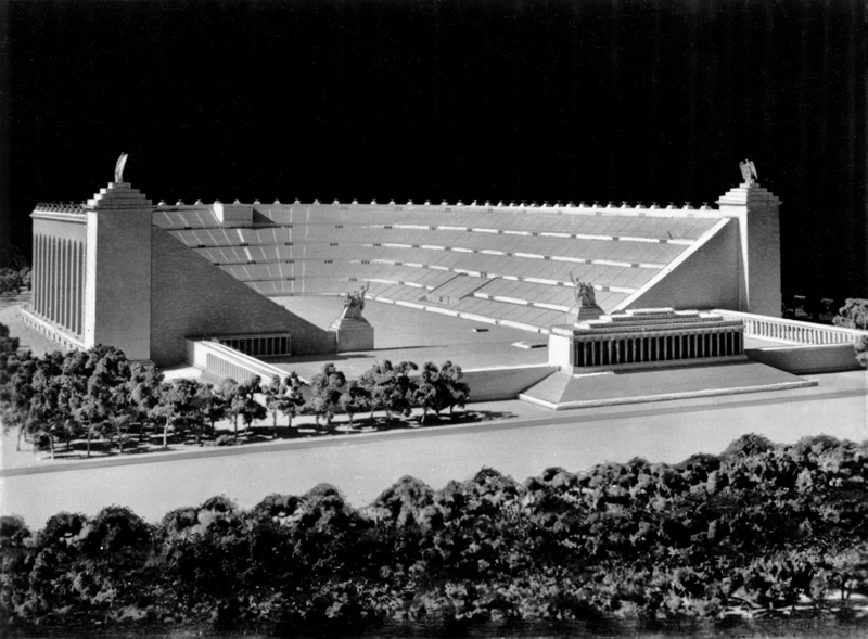 Modell des Deutschen Stadions auf dem Reichsparteitagsgelände. Fotografie von Stojaverlag/Photo-Werkstätten von 1937. (Bayerische Staatsbibliothek, Bildarchiv hoff-67977) HLB