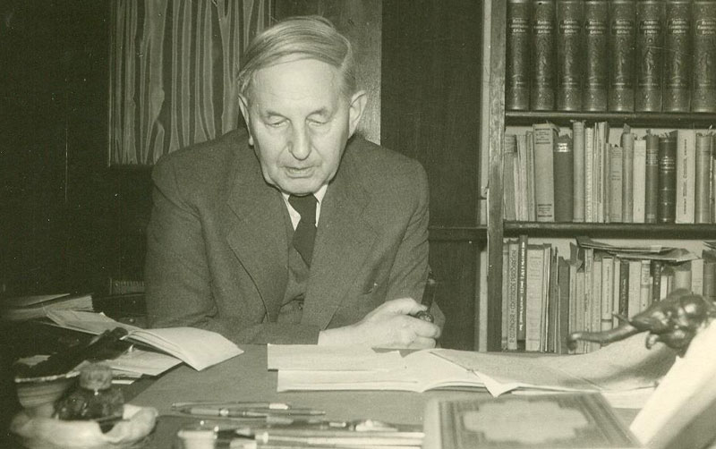 Joseph Bernhart (1881-1969), schwäbischer Dicher und Theologe, in seinem Arbeitszimmer, ca. 1950. (Joseph-Bernhart-Gesellschaft e.V.)]