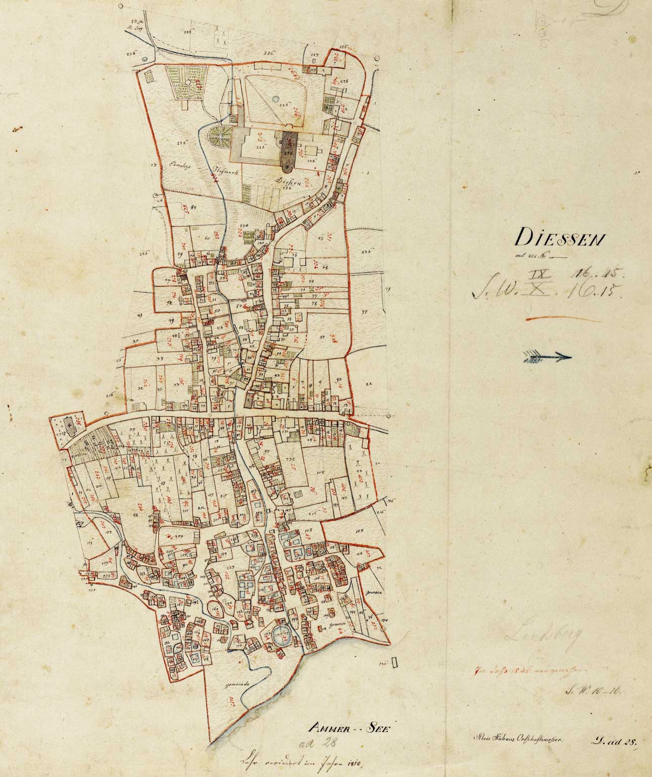 Ansicht von Dießen am Ammersee, 1810. (Bayerische Vermessungsverwaltung, Die 1810 D28 lizenziert durch CC BY-ND 4.0) HLB