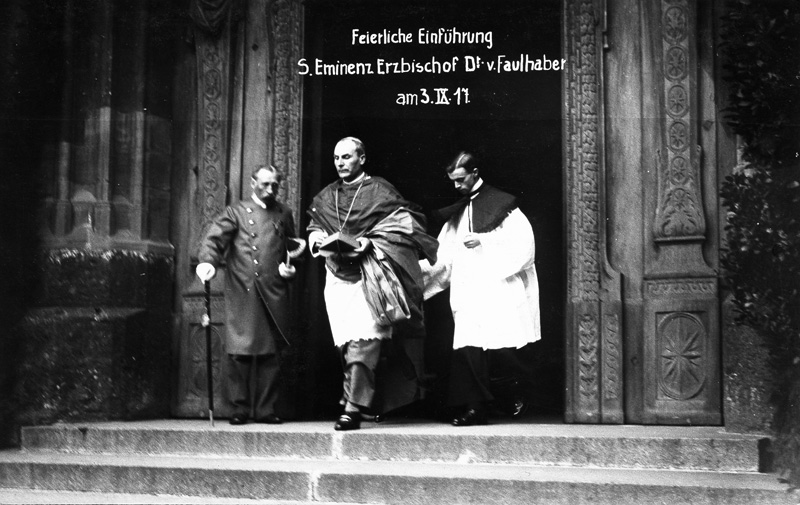 Feierliche Einführung Michael Faulhabers in das Amt des Erzbischofs von München und Freising am 3.9.1917. Das Foto zeigt den Bischof beim Verlassen der Frauenkirche in München (Bayerische Staatsbibliothek, Bildarchiv). Vom Eigentümer zur Verfügung gestellt.