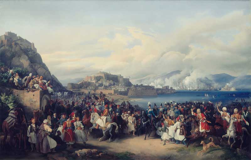 Einzug König Ottos (1815-1867) von Griechenland in Nauplia am 6. Februar 1833. Gemälde von Peter von Hess (1792-1871), 1835. (Bayerische Staatsgemäldesammlungen – Neue Pinakothek München, Inv.-Nr. WAF 352 lizenziert durch CC BY-SA 4.0) HLB