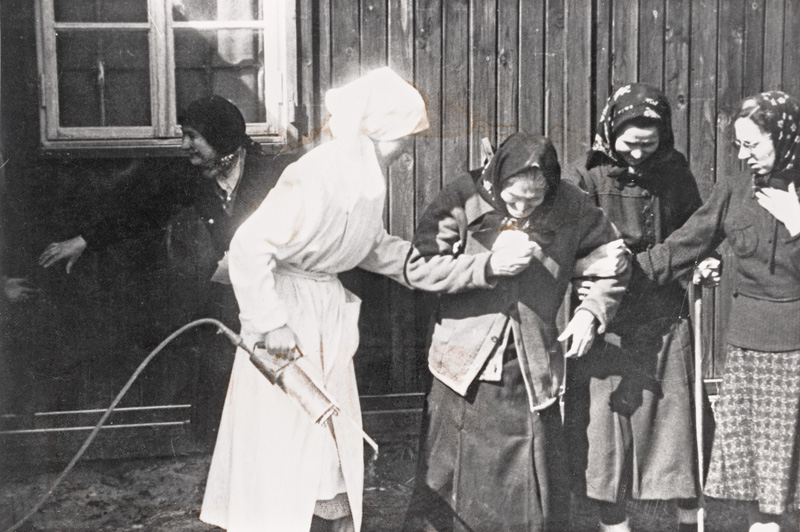 Die Entlausung der angekommenden Flüchtlinge gehörte zur Standartprozedur im Durchschleusungsverfahren. (Sudetendeutsches Archiv, Bildersammlung 21406, mit Genehmigung des Stadtarchives Furth im Wald) HLB