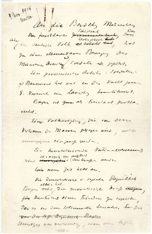 Datei:Entwurf Eisner Freistaatsproklamation 1918 1.jpg