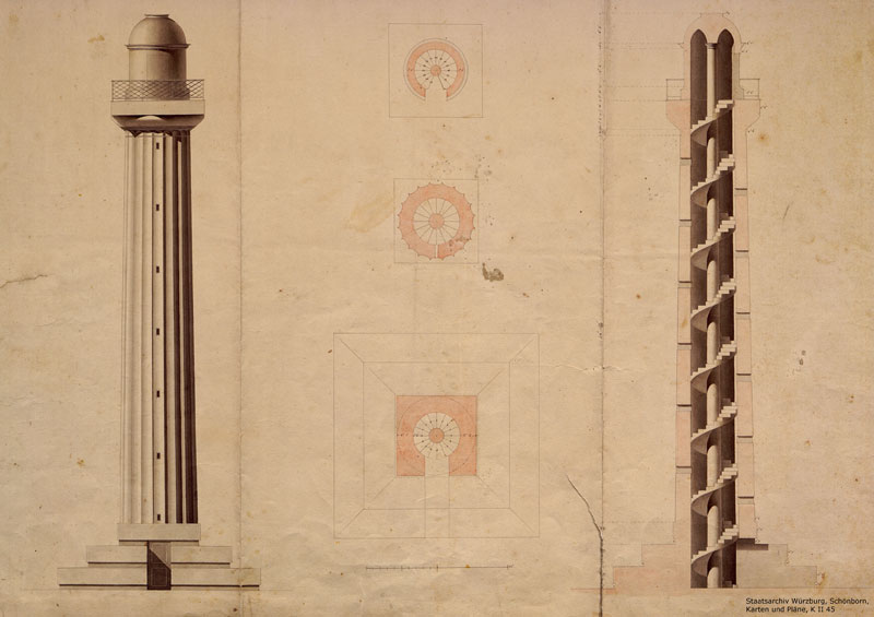 Erster Entwurf zur Konstitutionssäule in Gaibach von Leo von Klenze (1784-1864) von 1820. (bavarikon) (Staatsarchiv Würzburg, Schönborn, Karten und Pläne, K II, 45)
