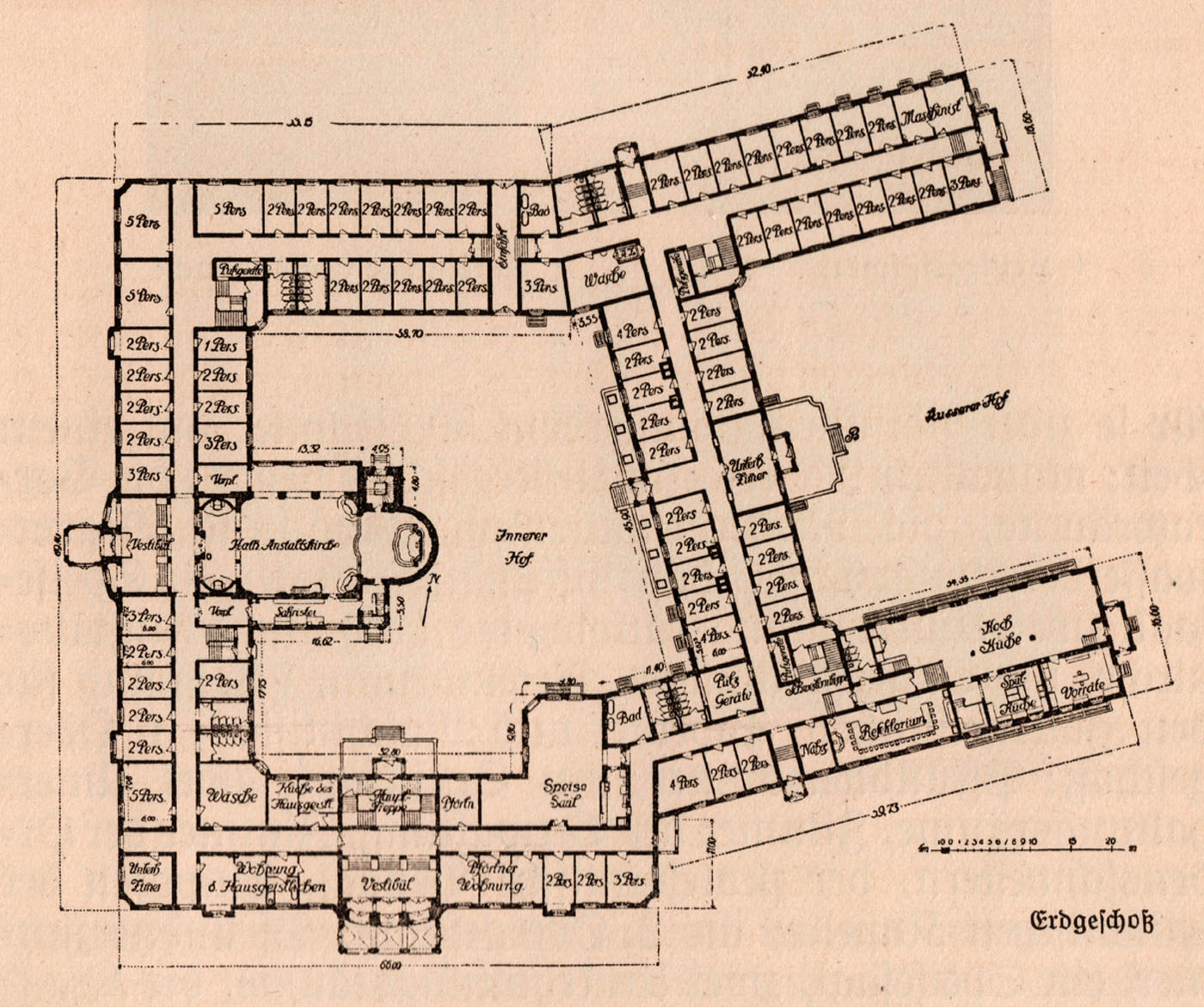 Der Erdgeschossplan des Heiliggeistspitals. (aus: Bayerischer Architekten- und Ingenieursverein [Hg.]: München und seine Bauten, München 1912, 649)
