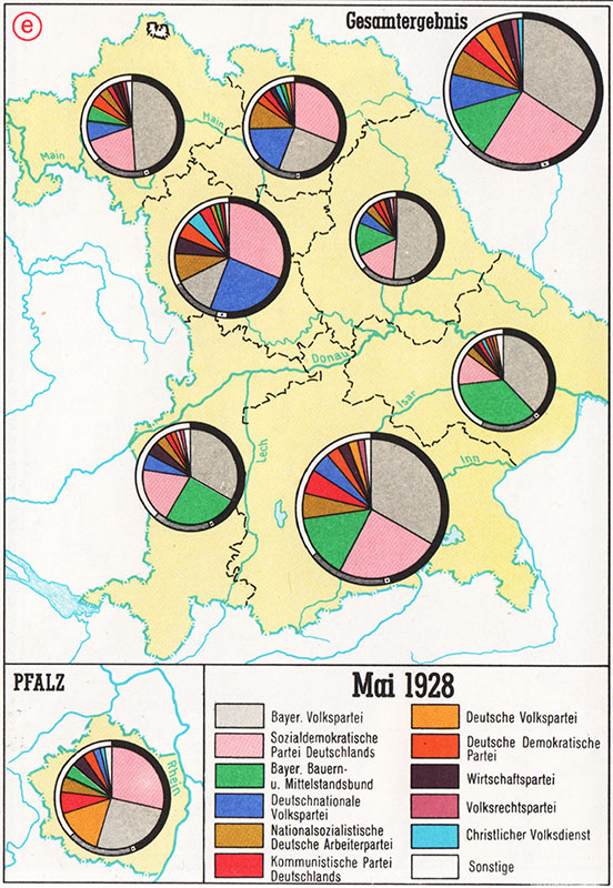 Ergebnisse der Landtagswahlen 1928. (Karte aus: Spindler/Diepolder: Bay. Geschichtsatlas, 42)