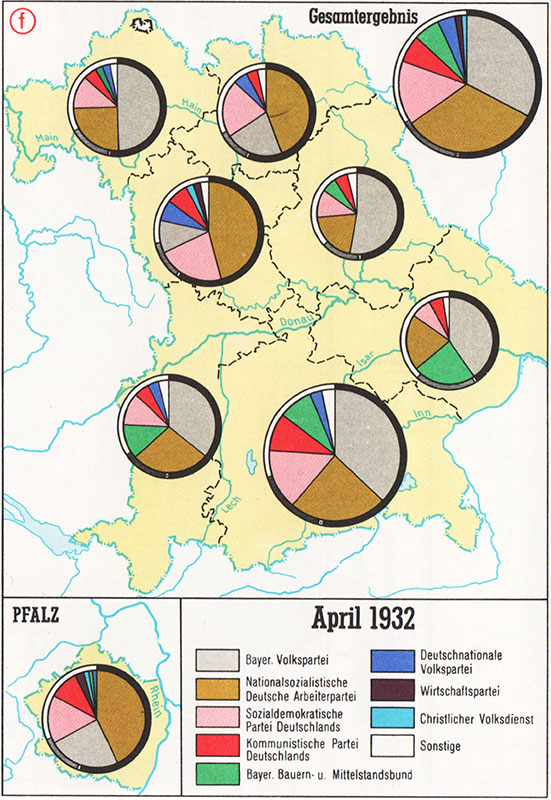 Ergebnisse der Landtagswahlen 1932. (Karte aus: Spindler/Diepolder: Bay. Geschichtsatlas, 42)