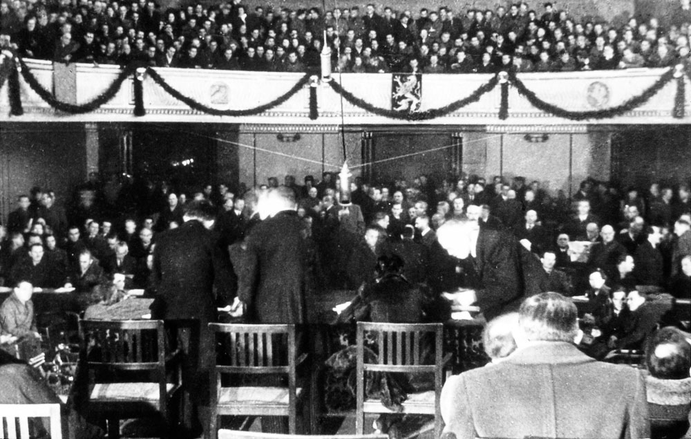 {{|1=Aufnahme der konstituierenden Sitzung des Bayerischen Landtags nach dem Zweiten Weltkrieg am 16. Dezember 1946. (Foto: N. N., Archiv des Bayerischen Landtags, AA01223A)}}