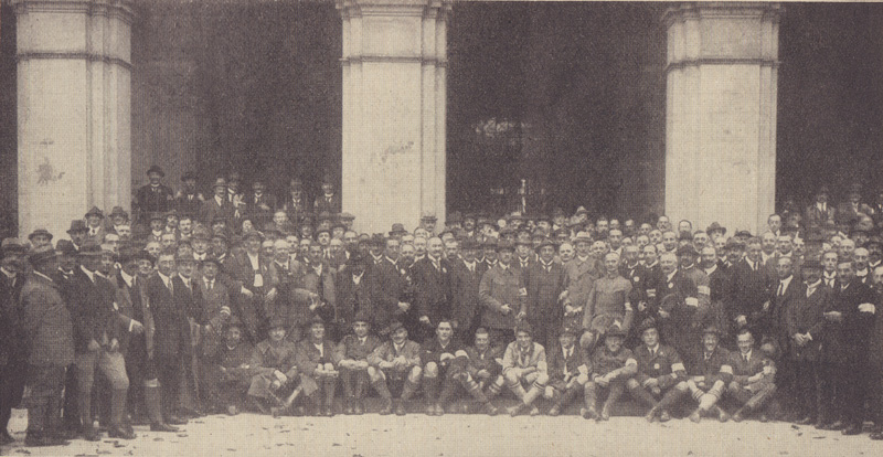 Landeshauptmann Escherich und stellv. Landeshauptman Kanzler mit den Kreis- und Gauhauptmännern vor der Universität. Abb. aus: Das Bayerland, Jahrgang 32 vom Oktober 1920, 22. Foto: Hoffmann. (Bayerische Staatsbibliothek, 4 Bavar. 198 tb-32) HLB