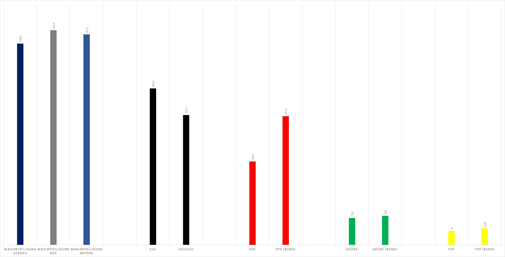 Ergebnisse der Europawahl 1989 in Bayern und im Bund. HLB
