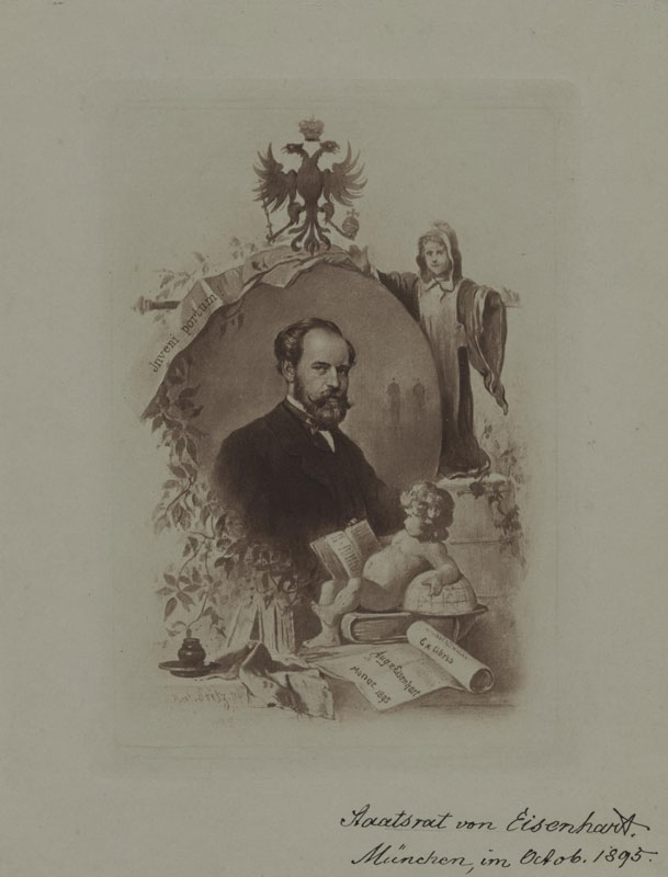 Exlibris Augusts von Eisenhart (1826-1905) von 1865. (Stadtarchiv München, DE-1992-HV-BS-A-30-16) HLB
