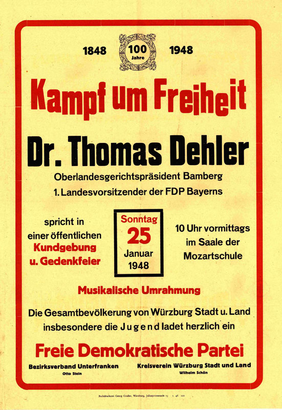 FDP Plakat für eine öffentliche Kundgebund der Bayern-FDP 1948. (Archiv des Liberalsimus, P2-844)