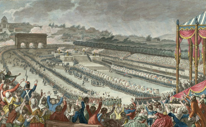 Föderationsfest Frankreichs auf dem Pariser Champ de Mars am 14. Juli 1790. ([ark:/12148/btv1b69476006 Source gallica.bnf.fr/Bibliothèque nationale de France]) HLB