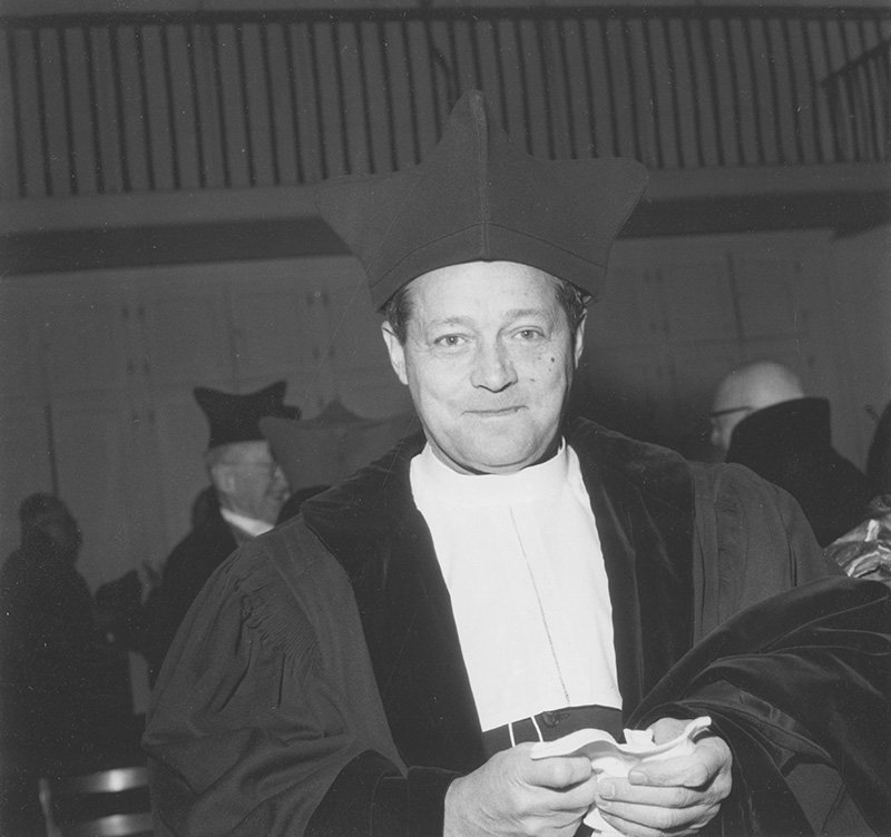 Der Biochemiker Feodor Lynen (1911-1979) erhielt 1964 den Nobelpreis für Medizin zusammen mit Konrad Bloch (1912-2000) „für ihre Entdeckungen über den Mechanismus und Regulation des Stoffwechsels von Cholesterin und Fettsäuren“. Das Foto von Felicitas Timpe (1923-2006) zeigt ihn bei Jahresfeier der Ludwig-Maximilians-Universität 1962. (Bayerische Staatsbibliothek, Bildarchiv timp-018988)