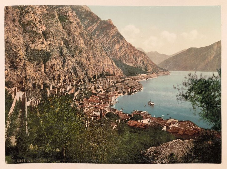 Limone am Gardasee, kolorierte Fotografie aus einem Reisealbum zwischen 1875 und 1903. (Staatsbibliothek, Slg.Lorenz 7155) HLB