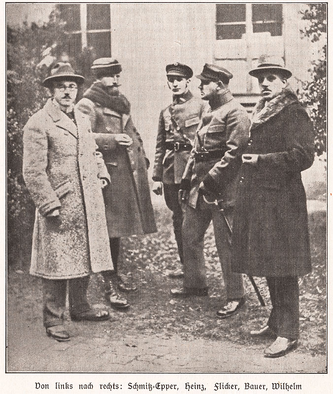 Der Präsident der Autonomen Pfalz Franz Joseph Heinz und Mitglieder seines Kabinetts. Abb. aus: Dokumente aus dem Befreiungskampf der Pfalz, Ludwigshafen 1930, 85. (Bayerische Staatsbibliothek, 4 H.un.app. 252)