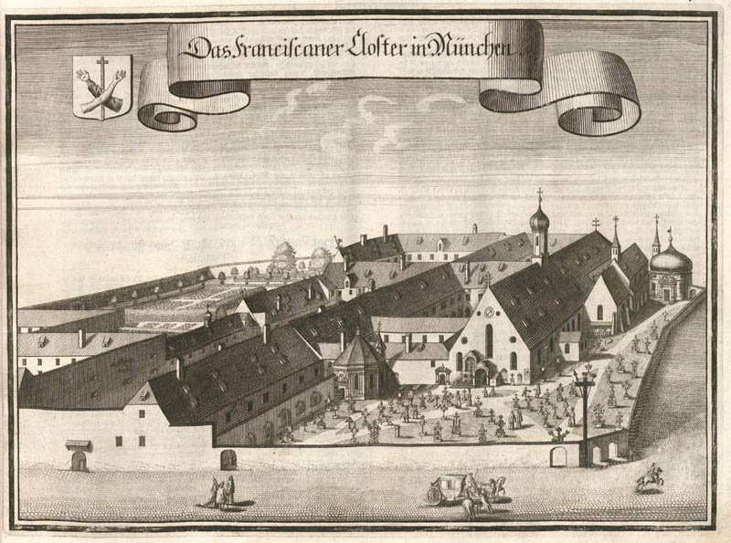 Das Franciscaner Closter in München. (in: Michael Wening, Historico-Topographica Descriptio, Bd. 1: Das Renntambt München, München 1701, M 14, Bayerische Staatsbibliothek)