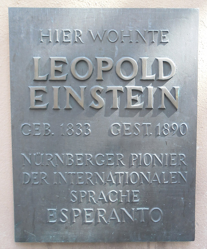 Gedenktafel für Leopold Einstein (eigtl. Leopold Löb, 1833–1890), Am Weinmarkt 14 (Nürnberg). (Foto von Aarp65 lizensiert durch CC BY-SA 3.0 via Wikimedia Commons) HLB