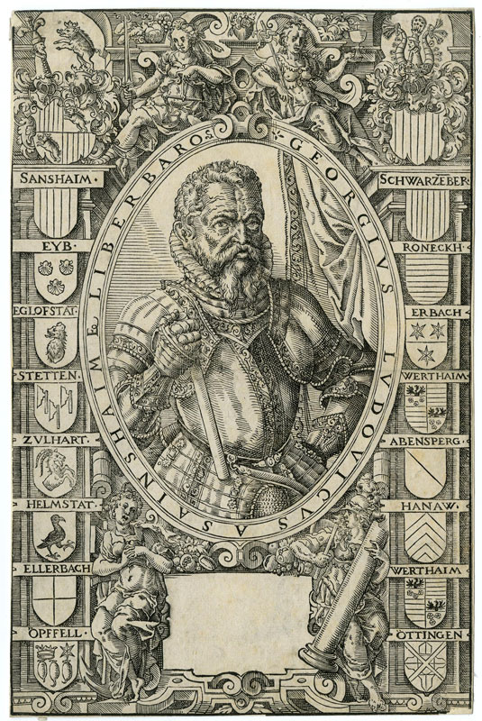 Georg Ludwig d. Ä. Freiherr von Seinsheim zu Hohenkottenheim (1514-1591), der Begründer des Seinsheim’schen Fideikommisses und Initiator der Erbverbrüderung mit den Schwarzenberg. Holzschnitt von Jost Amman (1539-1591). (© The Trustees of the British Museum lizenziert durch CC BY-NC-SA 4.0) HLB
