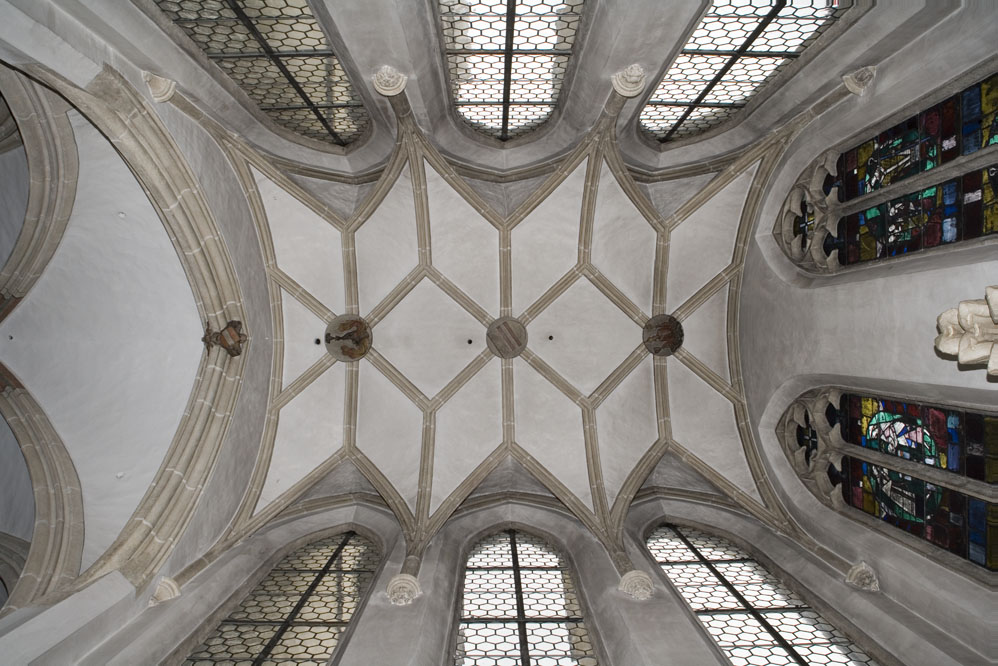 Gewölbe des Erasmuschörleins in der Andreas- oder Herrenkapelle, Anfang 15. Jahrhundert. (Fotografie: Dionys Asenkerschbaumer, auch in: Möseneder, Karl: Der Dom zu Passau, Regensburg 2015, 19)