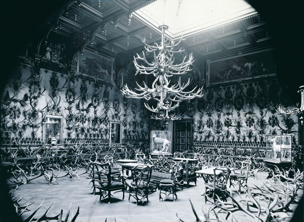 {{|1=Die Geweihsammlung von Maximilian "Max" Bernhard Graf von Arco-Zinneberg (1811-1885, auch "Adlergraf" genannt) zum Verkauf stand (sog. Sammlung Arco) bildete den umfangreichsten Grundstock für das spätere Deutsche Jagdmuseum. Zur Sammlung Arco, die im Palais der Familie Arco-Zinneberg am Wittelsbacherplatz in München aufbewahrt wurde, gehörten u. a. aus Geweihen gefertigte Möbel. Die Sammlung konnte 1934 für das geplante Museum angekauft werden. (© Deutsches Jagd- und Fischereimuseum)}}