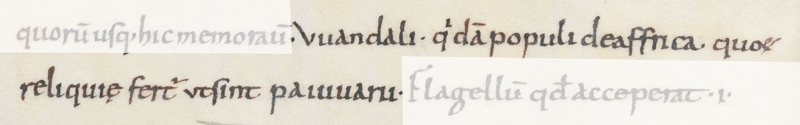 Gleichsetzung der Bayern mit den Vandalen. Ausschnitt aus: Glossaria diversa, St. Gallen 2. Hälfte 9. Jh., p. 262. (Stiftsbibliothek St. Gallen, Cod. Cod. Sang. 299, lizensiert durch CC BY-NC 4.0) HLB