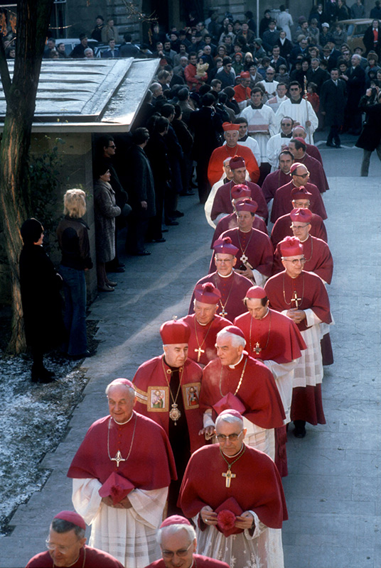 Bischöfe beim Einzug zum Gottesdienst im Würzburger Dom während der 8. Sitzungsperiode der Würzburger Synode im November 1975. (© KNA) HLB