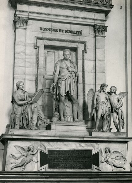 Grabmal für Herzog Eugéne von Leuchtenberg in St. Michael in München. Der Entwurf stammt von Leo von Klenze (1784-1864), die Skulpturen von Bertel Thorvaldsen (1770-1844). Foto von Max Prugger (1918-2003), 1964. (Bayerische Staatsbbliothek, Bildarchiv pru-002374) HLB