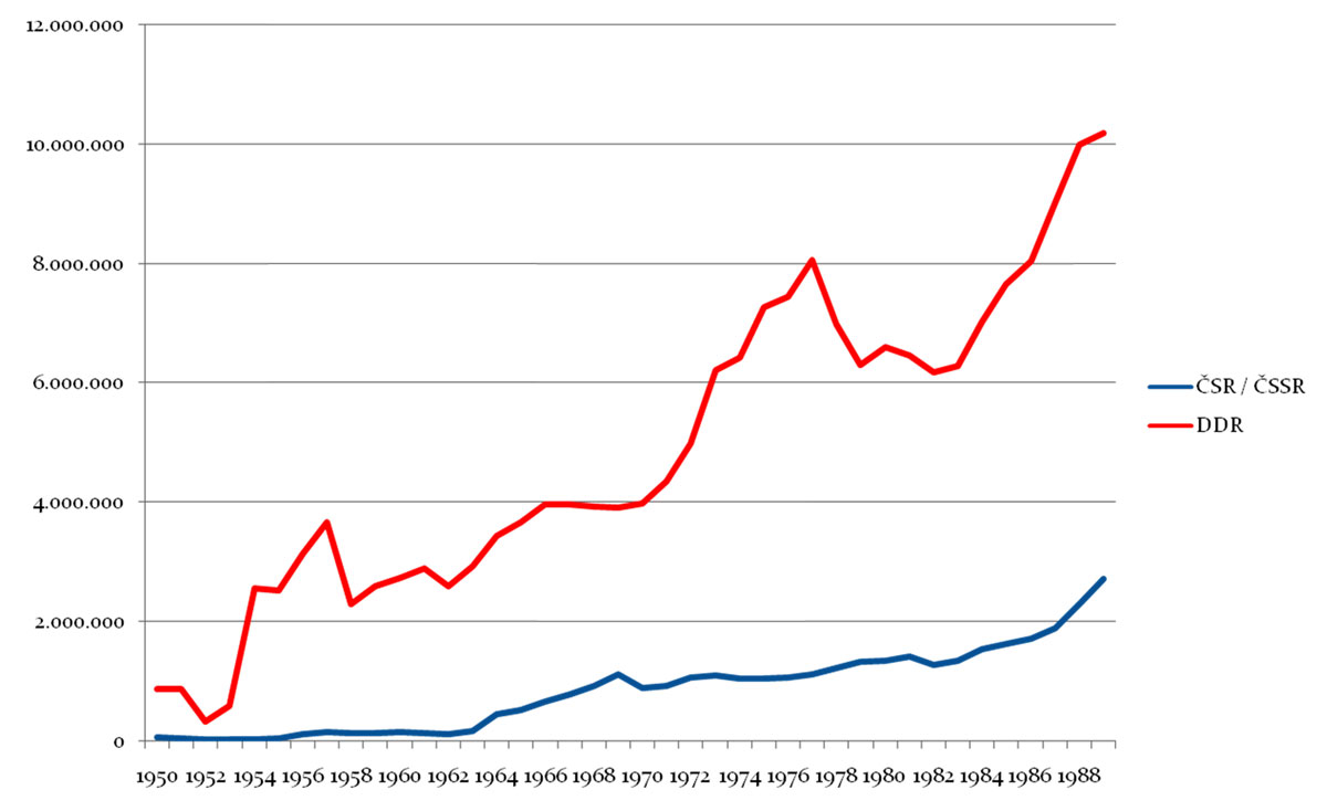 Entwicklung des grenzüberschreitenden Gesamtverkehrs an der bayerisch-innerdeutschen und bayerisch-tschechoslowakischen Grenze im Zeitraum zwischen 1950 und 1989. (Markus Meinke) HLB