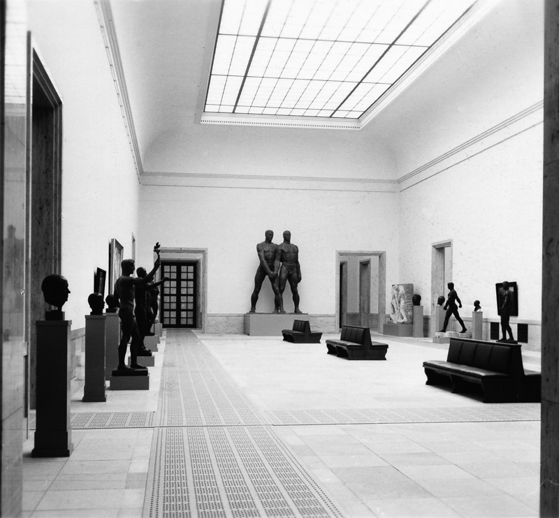 Hauptsaal der Skulpturen, Große Deutsche Kunstausstellung 1937. Aufnahme von Heinrich Hoffmann am Tag der Deutschen Kunst, 18. Juli 1937. (Bayerische Staatsbibliothek, Bildarchiv hoff-15597) HLB