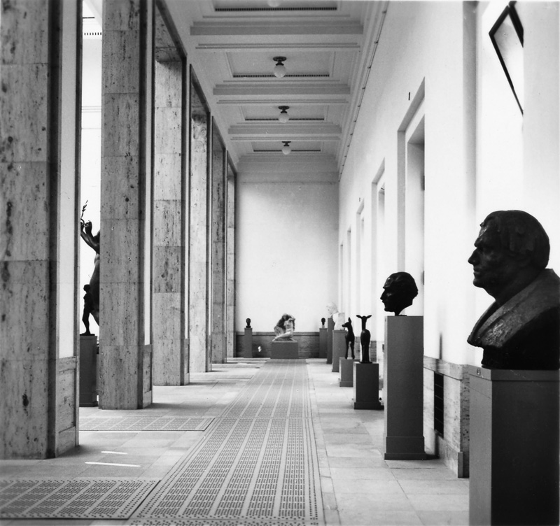 Blick in den Korridor entlang der östlichen Säle, Große Deutsche Kunstausstellung 1937. Aufnahme von Heinrich Hoffmann am Tag der Deutschen Kunst, 18. Juli 1937. (Bayerische Staatsbibliothek, Bildarchiv hoff-15600) HLB