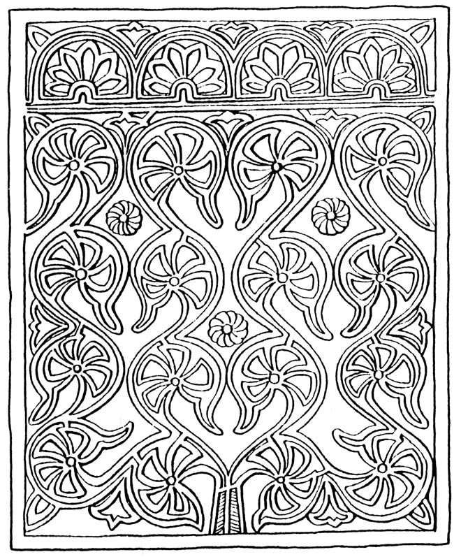 Rekonstruktionsvorschlag der Chorschrankenplatte mit dem Lebensbaum. Fundort: Gstadt am Chiemsee. Ursprünglich wohl aus der frühmittelalterlichen Kirche des Klosters Frauenwörth. Abb. aus: H. Dannheimer: Frauenwörth (2006), 30. (Hermann Dannheimer) HLB