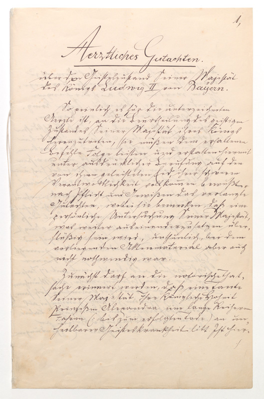 Ärztliches Gutachten über den Geisteszustand König Ludwigs II. (1845-1886, König 1864-1886). (Das vollständige Gutachten findet sich bei bavarikon) (Bayerisches Hauptstaatsarchiv, GHA, Ministerium des Königlichen Hauses 197, lizenziert durch CC BY-NC-ND 4.0) HLB
