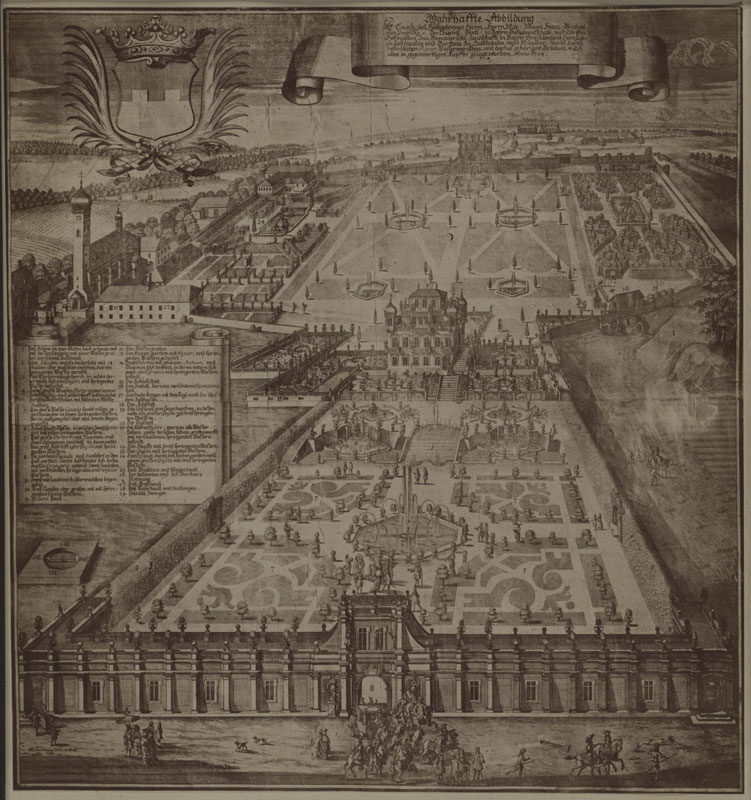 Schloss und Garten Haidhausen. Preysingschloß. Kupferstich von Michael Wening (1645-1718), 1704. (Historischer Verein von Oberbayern - Bildersammlung via Stadtarchiv München, DE-1992-HV-BS-D-02-20) HLB